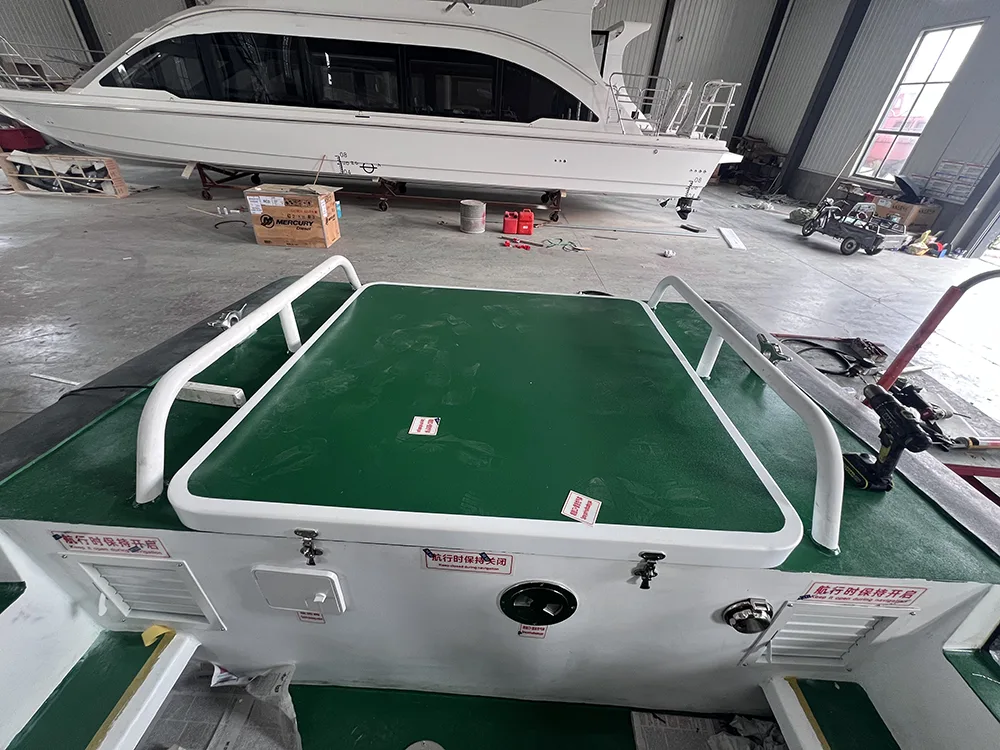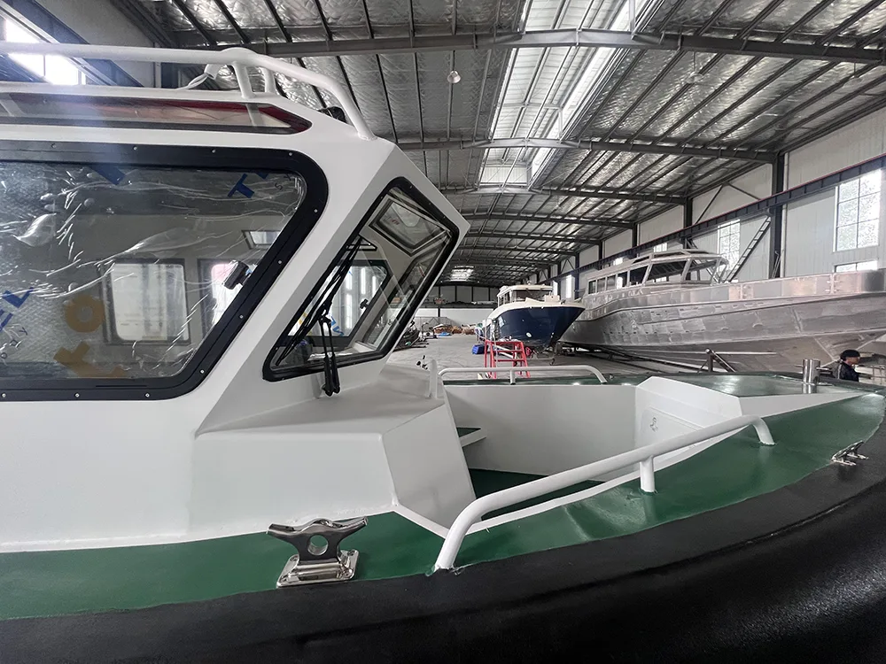 La coque est en aluminium 5083-H116, offrant une haute résistance et une bonne résistance à la corrosion. Equipé d'EVA solide avec pavois en polyurée (pour améliorer la protection contre les chocs) et de mains courantes en acier inoxydable 316 (pour assurer durabilité et sécurité),